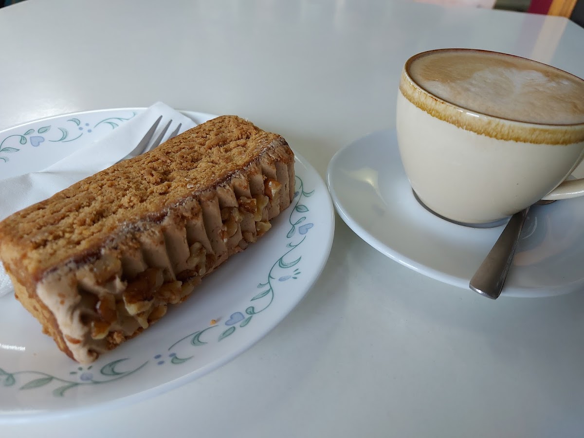 A visit to Coffee On Jacob wouldn’t be complete without trying their signature drinks and baked goods. The Cappuccino is a crowd favorite, with its smooth, creamy texture and rich flavor that pairs perfectly with a slice of their famous Coffee Walnut Cake. If you prefer a bit more variety in your coffee experience, the Latte is another must-try. The delicate blend of espresso and steamed milk is comforting and paired effortlessly with the Custard Tart, a dessert that’s as indulgent as it is delicious. For a savory treat, grab a warm Pie or Sausage Roll, both of which are perfect for an on-the-go meal or a quick snack between errands.